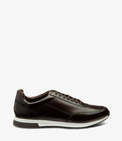 Dark Brown Calf trainer featuring cemented rubber soles. Bannister is fully leather lined and uses the Trainer last shape in F width.