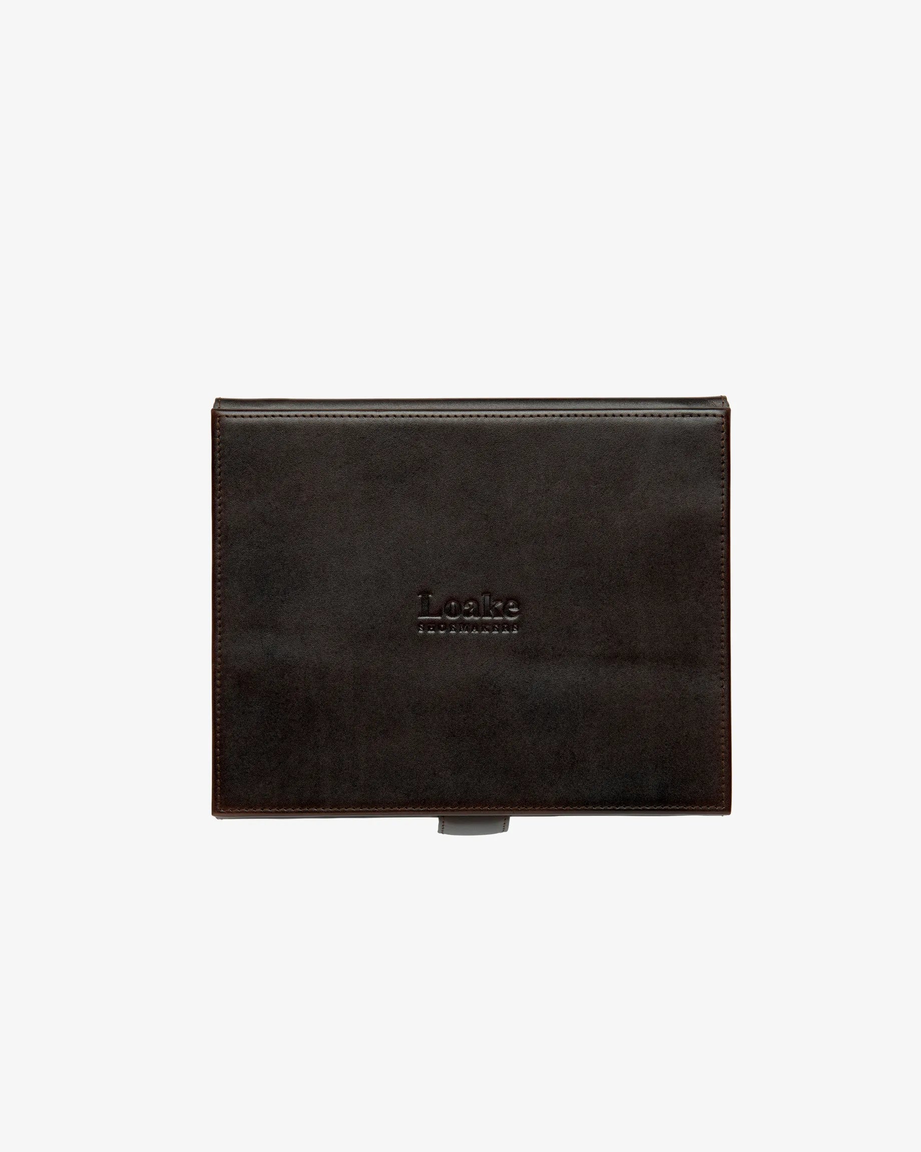 A luxurious valet box in dark brown calf. Our complete Shoe Care Box in collaboration with Saphir. A must have to maintain and increase the lifetime of your shoe collection.