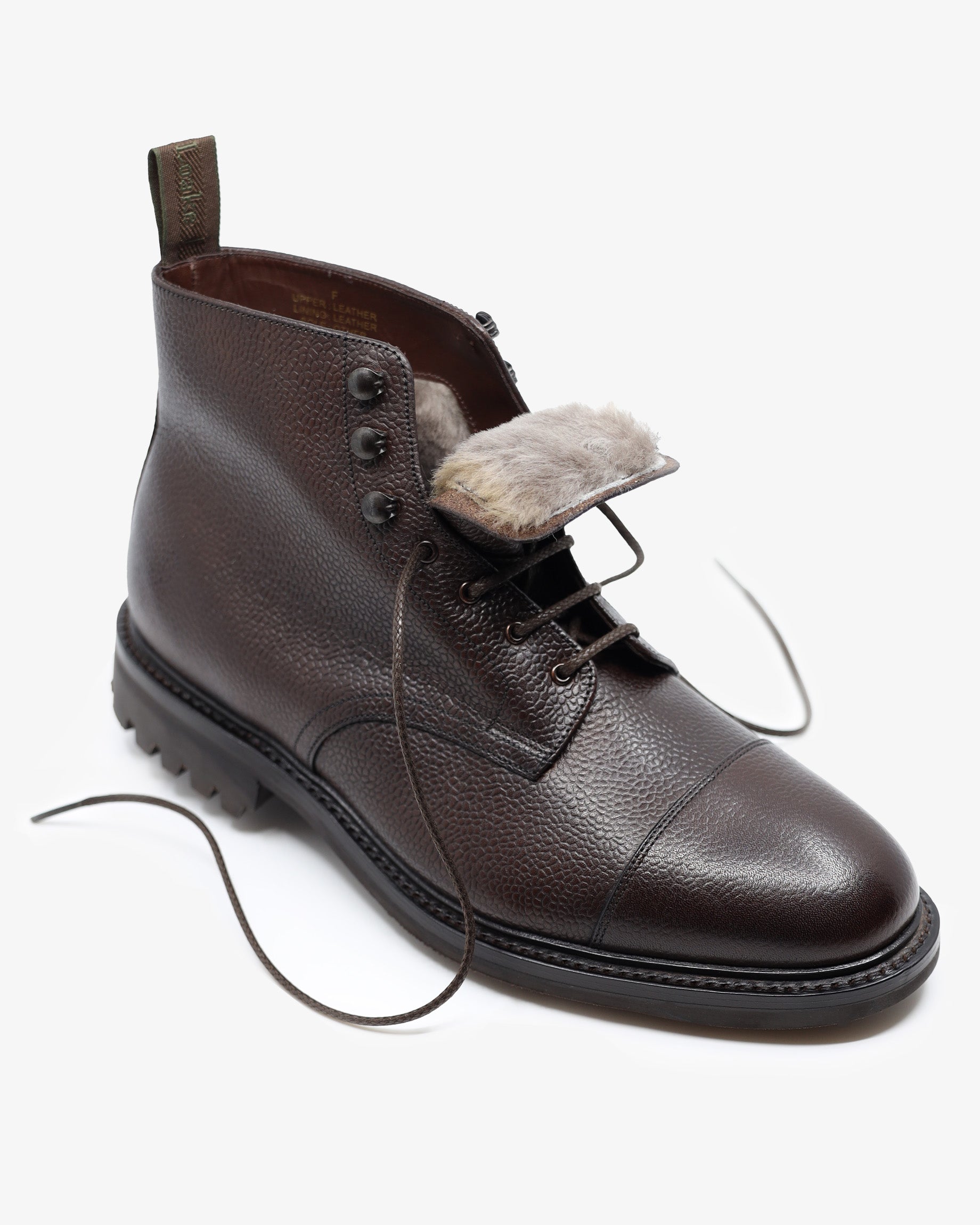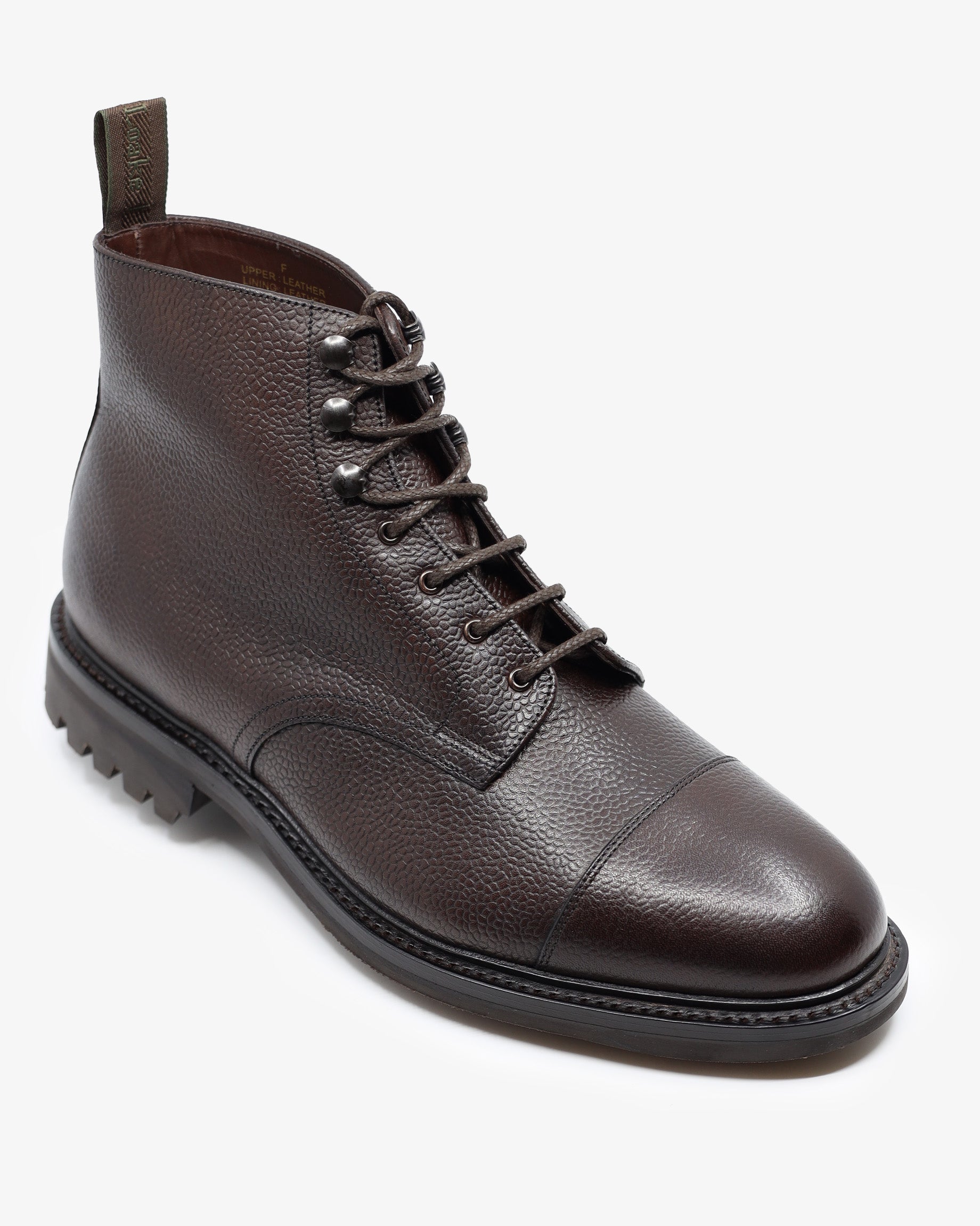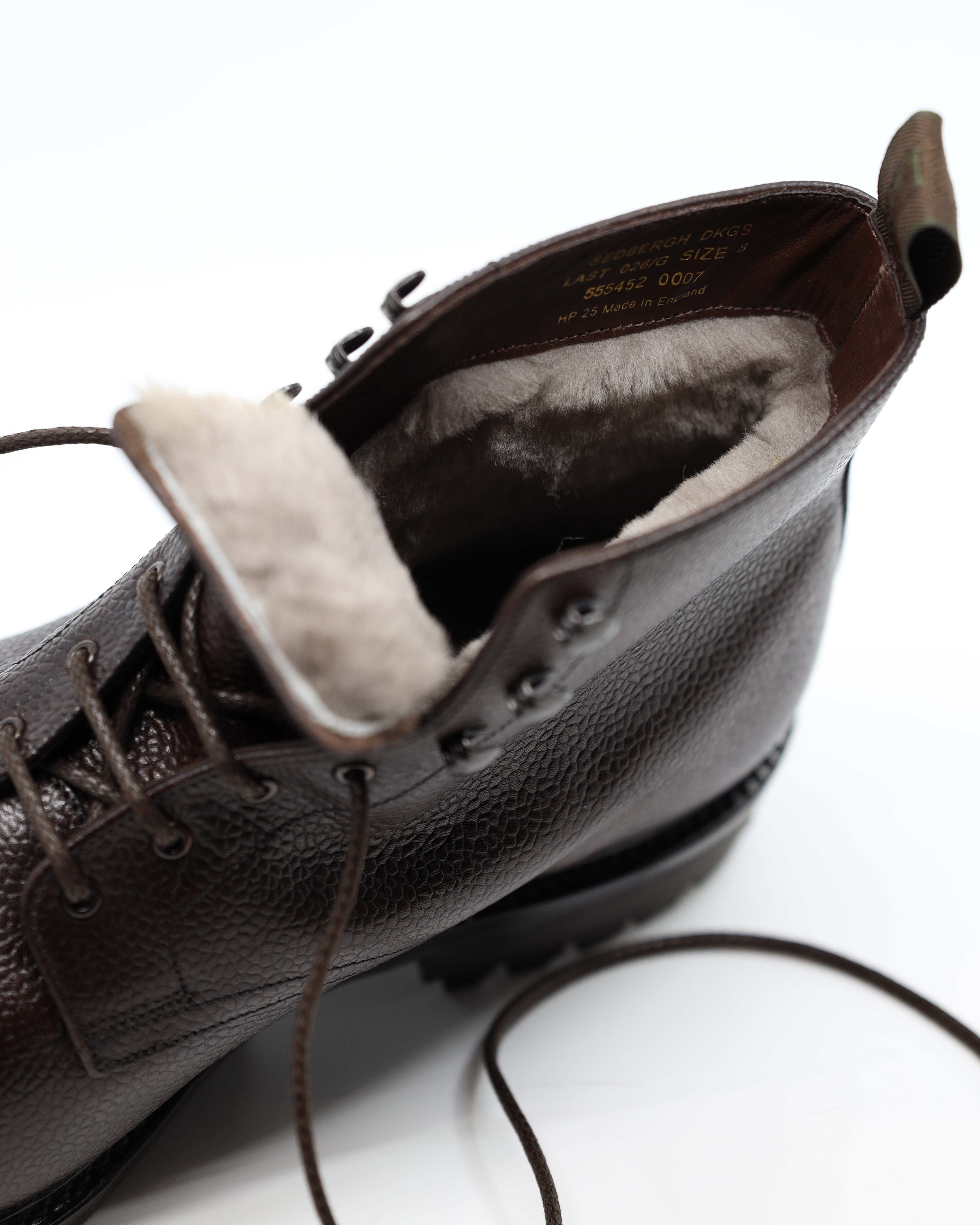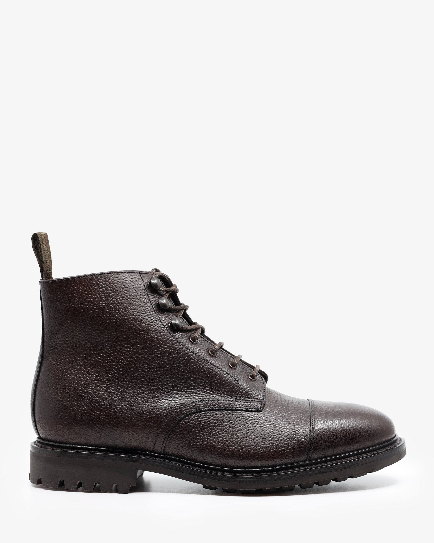Sedbergh is your perfect winter warrior, a military-style boot with Commando Rubber Soles. A derby, toe-cap boot made in Dark Brown Grain Calf leather. Lacing these boots up are very easy with the added speed hooks and pulling strap.