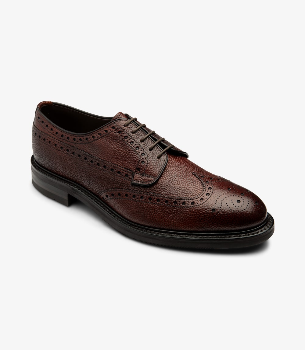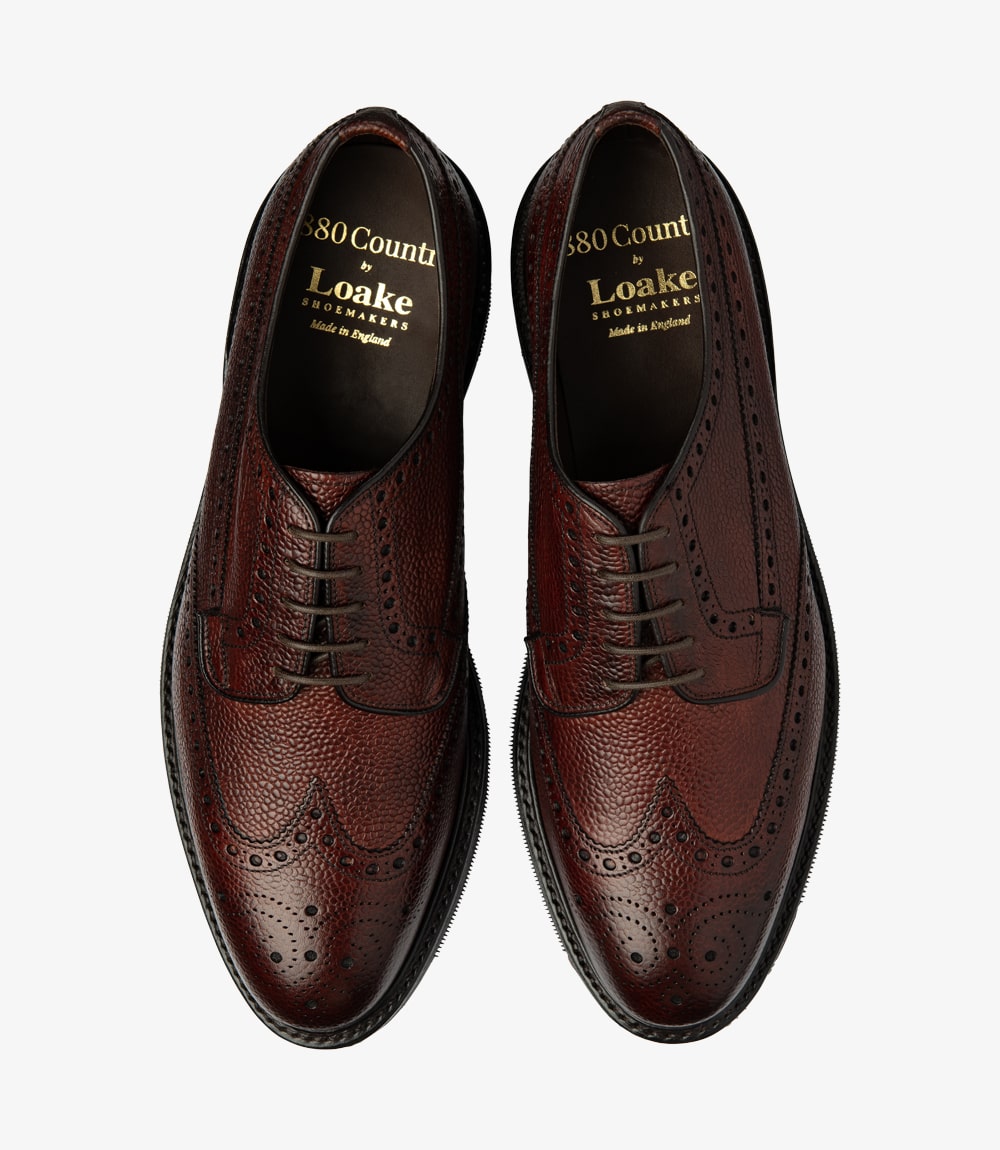 A classic derby brogue shoe with a heavyweight aesthetic, featuring a new lightweight combination of our popular Shadow city-sole and through sole. Ripon is made using our round and soft almond shaped last Minster/F. Ideal for casual autumn days in denim or more relaxed office attire. Available in Oxblood Grain Calf or Dark Brown Suede. This shoe are designed, engineered and made in our high-grade factory in Kettering, England.