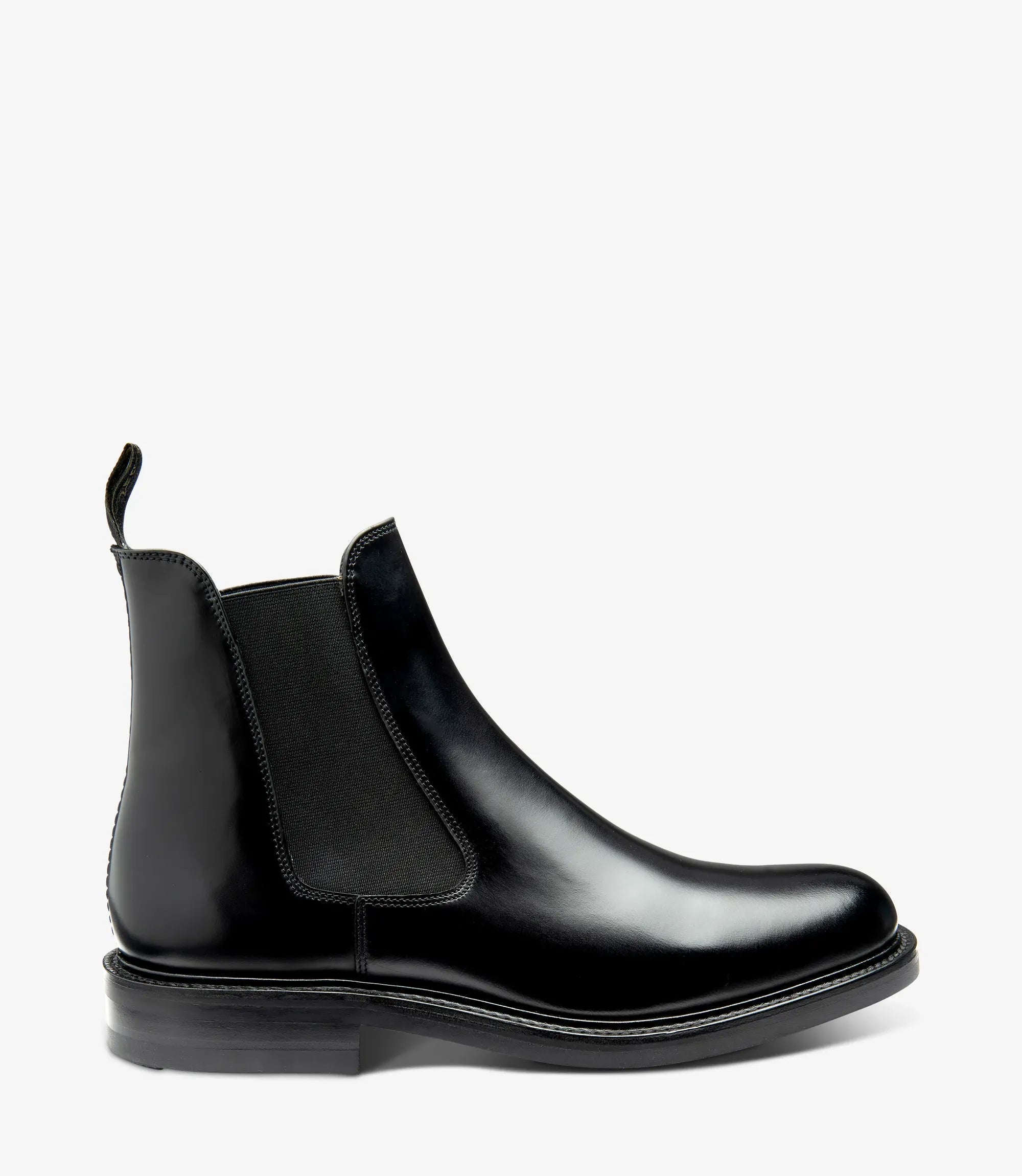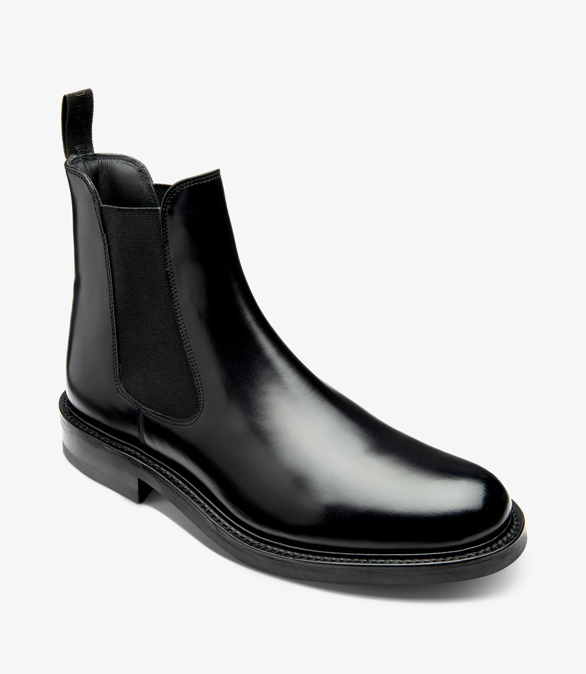 Dorchester is a casual Chelsea boot, crafted in polished black leather that combines timeless elegance with a slightly chunkier, more contemporary edge. Built on the Castle last and fitted with a sturdy Goodyear welted stud rubber sole, it ensures durability and confident grip in any condition.