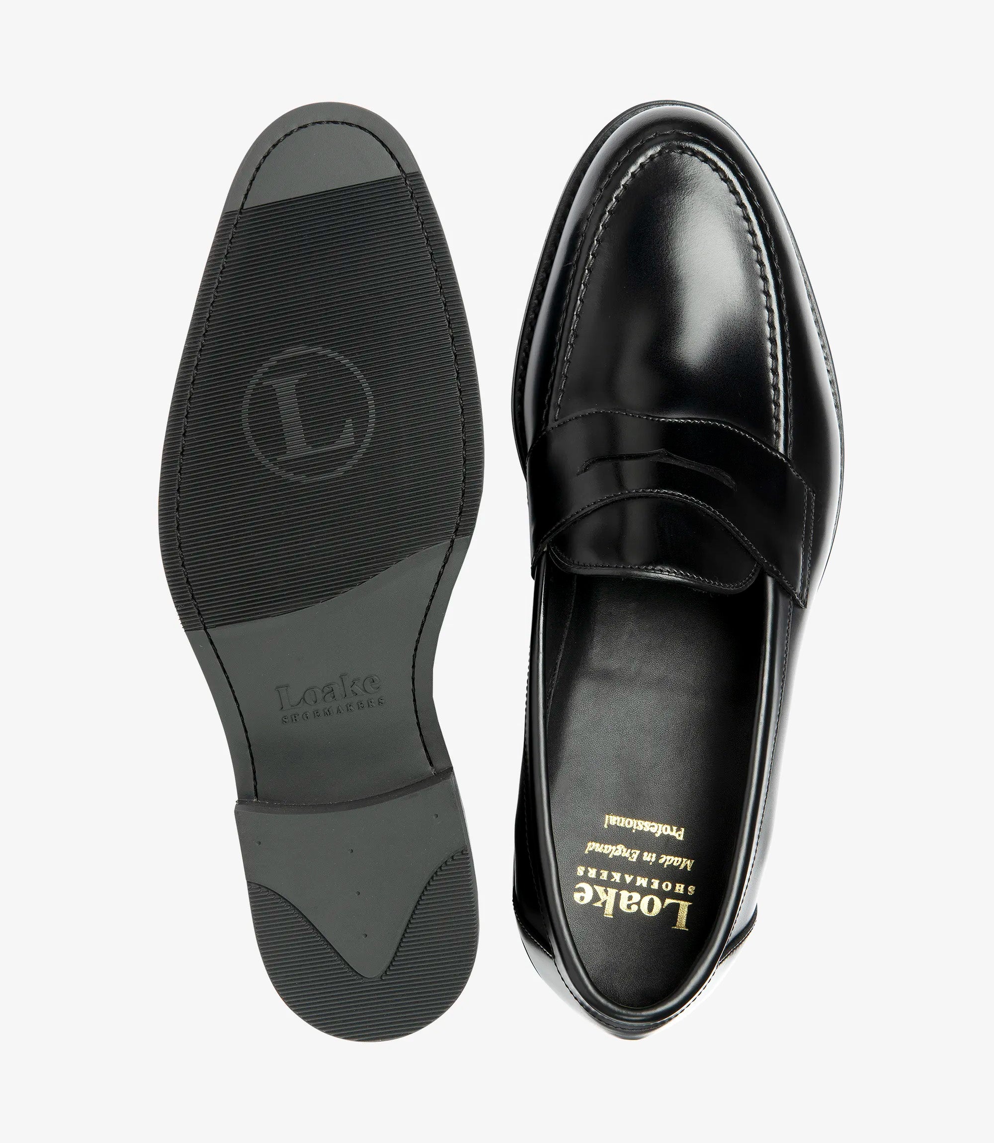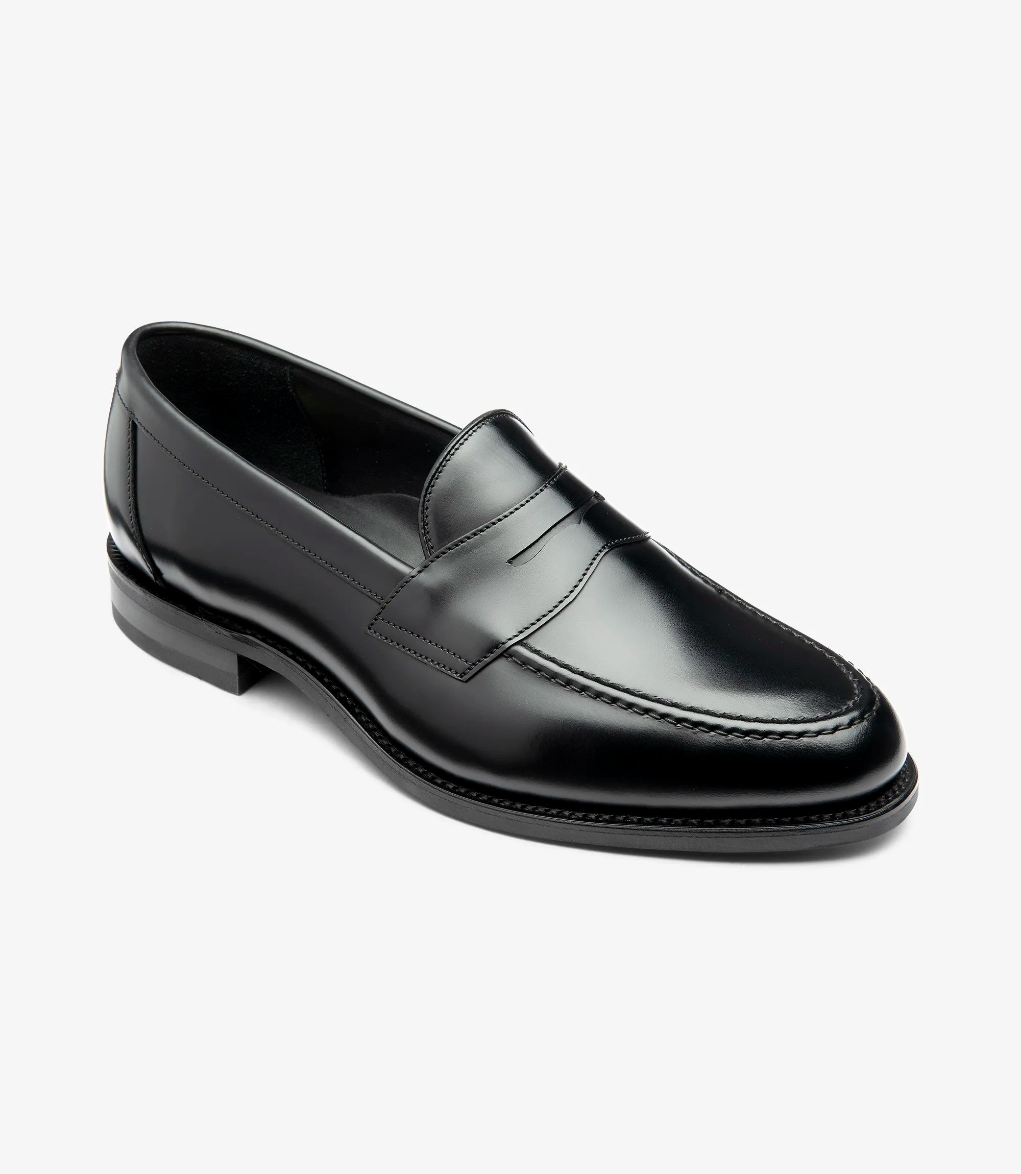 Our bestselling penny loafer. Now available in wide fit. Made on our new loafer last shape called College/G. A soft almond toe shape last which suits both dressed and casual attire. This version features our slim Shadow Rubber Sole.