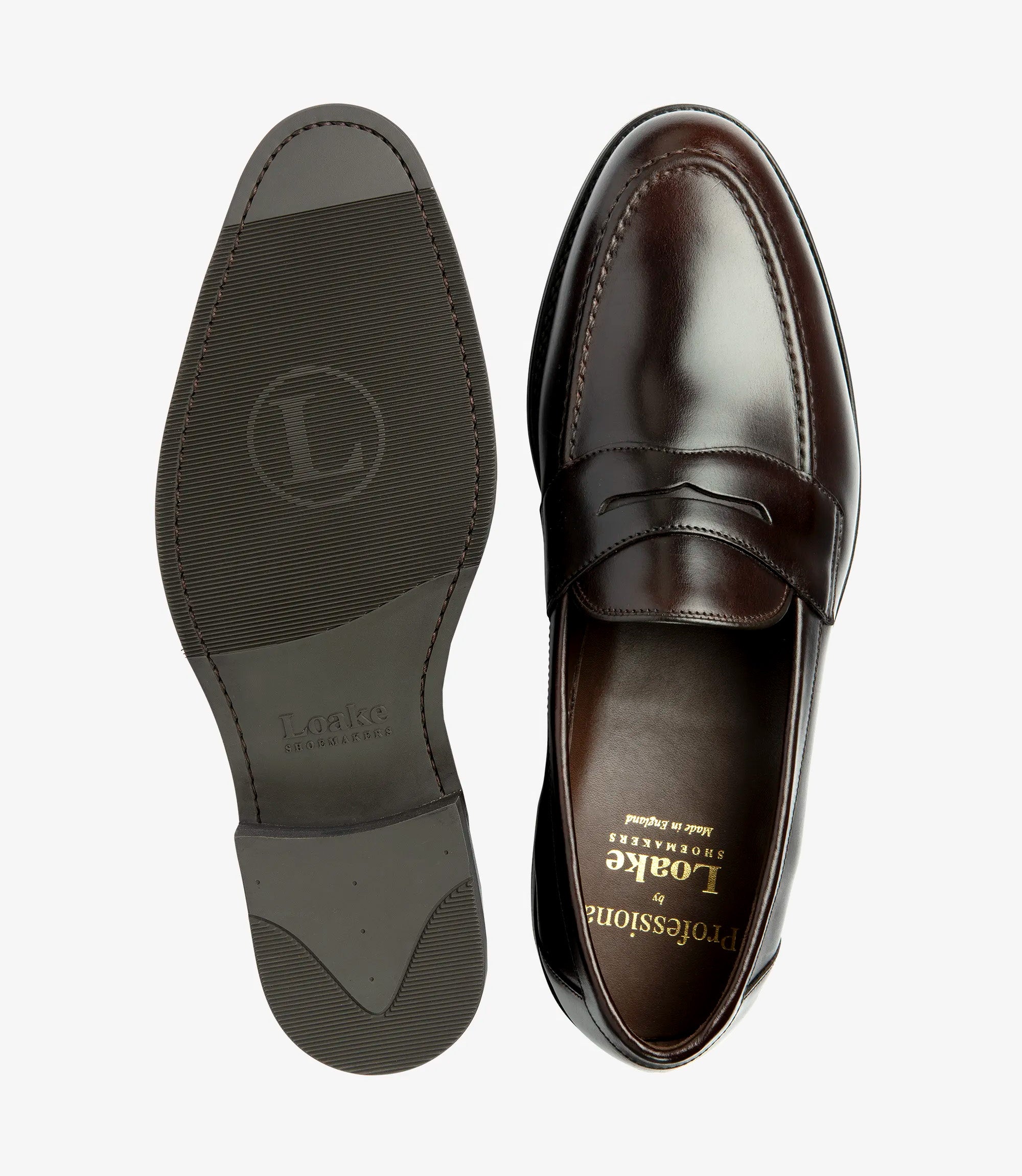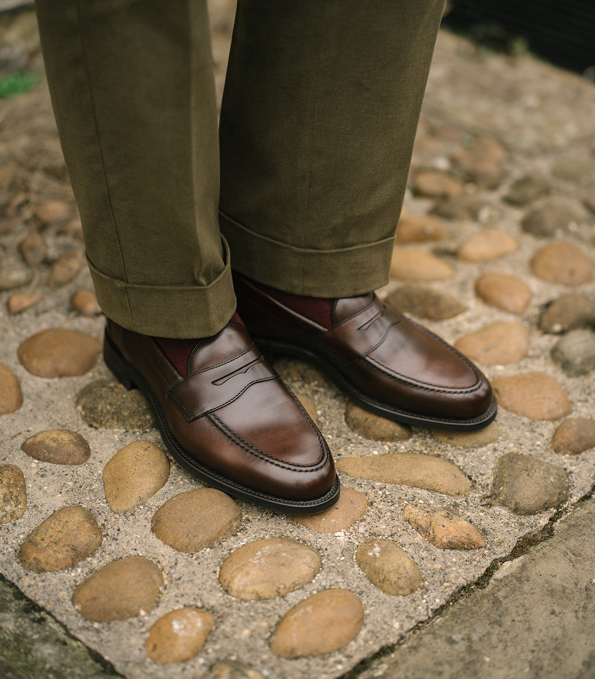 Penny loafer style Imperial, a true classic that every gentleman should have in his shoedrobe. Made on our loafer last shape called College/F. A soft almond toe shape last which suits both dressed and casual attire. This version features our slim Shadow Rubber Sole.