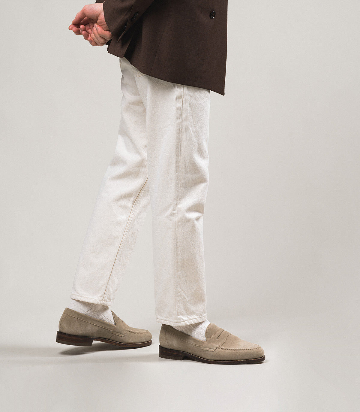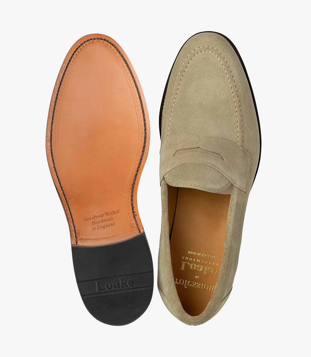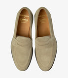 Sand Suede Penny Loafer, a true classic that every gentleman should have in his shoedrobe. Made on our new loafer last shape called College/F. A soft almond toe shape last which suits both dressed and casual attire.