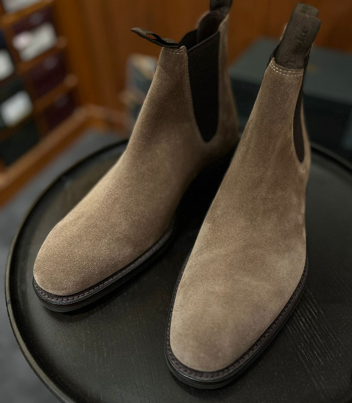 Our Emsworth is a plain Premium Chelsea boot in Flint Suede. Features Goodyear Welted Shadow rubber sole for greater longevity and grip, whilst maintaining a slim profile. Capital last shape in F fitting.