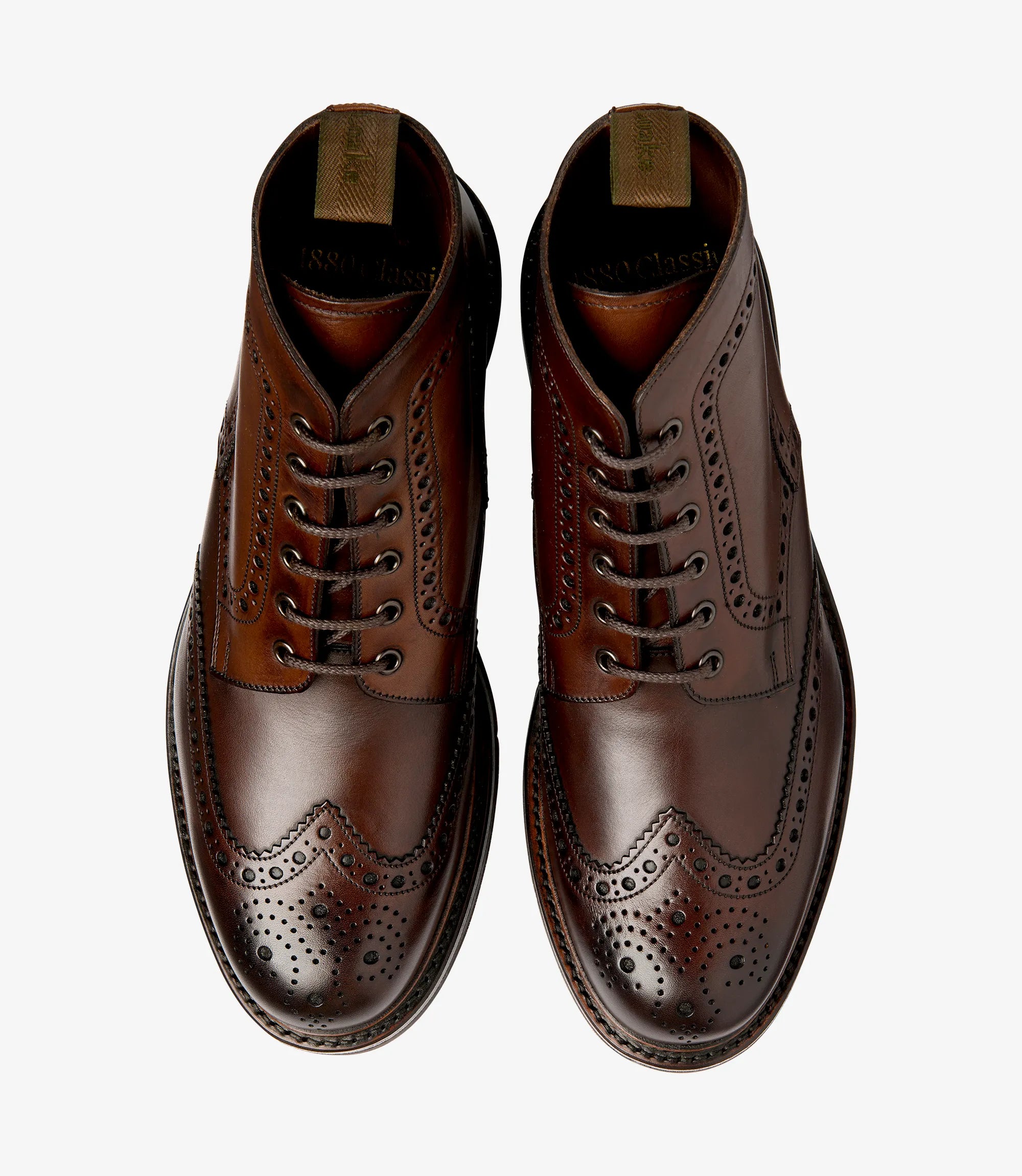 Loake 1880 Country Bedale is a long time best seller capturing the DNA of British boots. This version is in hand painted dark brown calf for a deep color and patina. Goodyear welted rubber soles for greater longevity and grip. Bedale uses the ‘pennine’ last shape, and is available in a ‘g’ fitting. These boots are designed, engineered and made in our high-grade factory in Kettering, England.