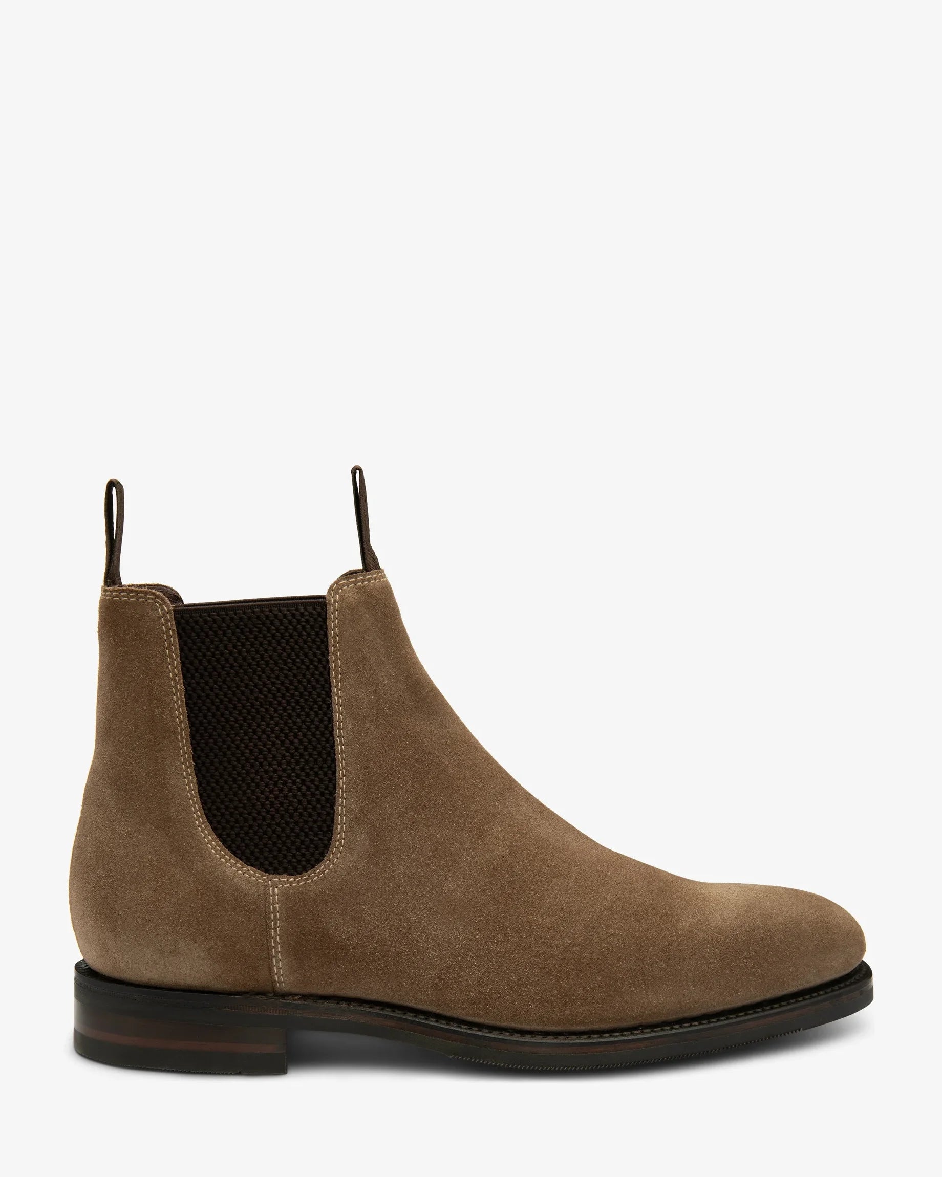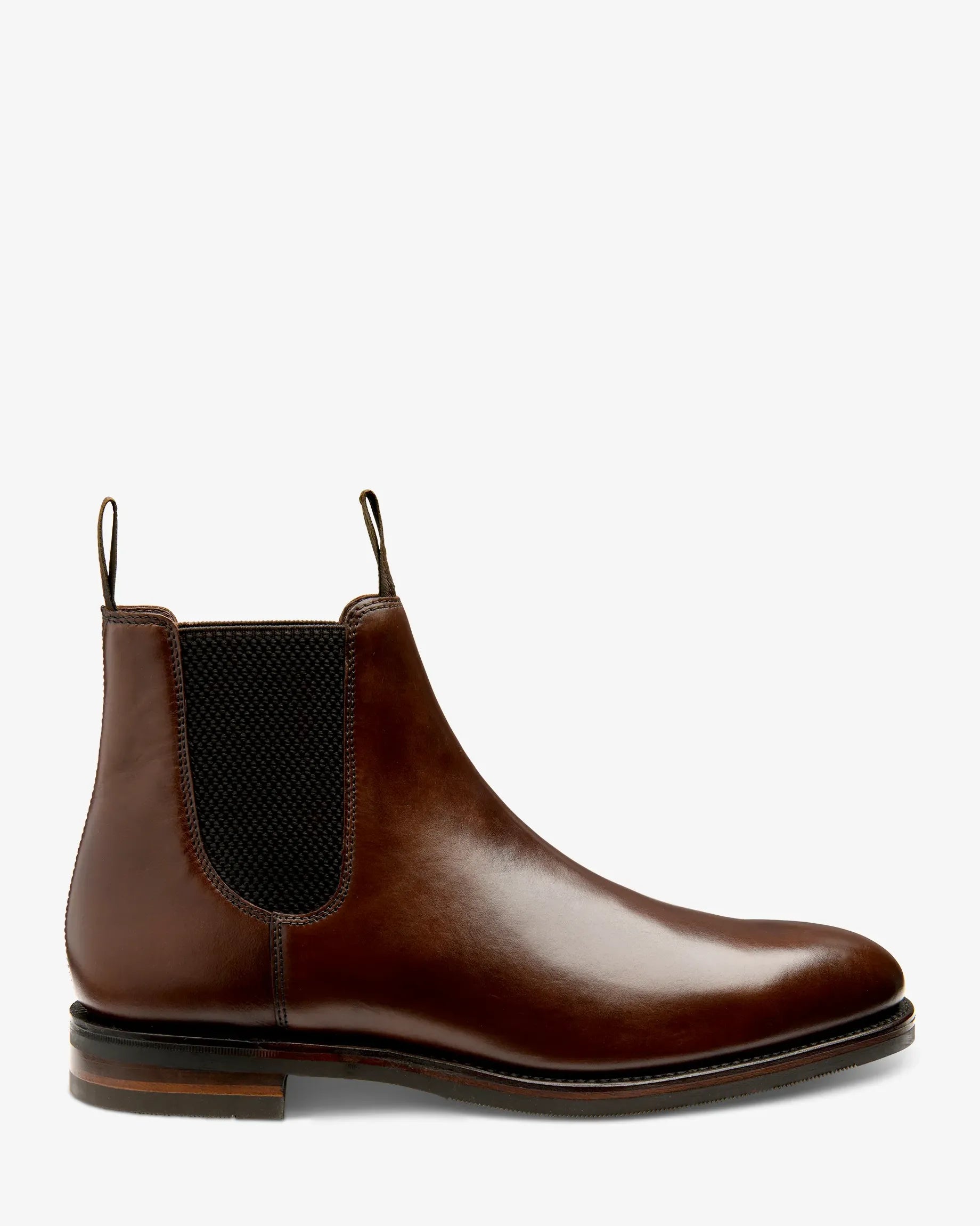Our Emsworth is a plain Premium Chelsea boot in Dark Brown Calf Leather. Features Goodyear Welted Shadow rubber sole for greater longevity and grip, whilst maintaining a slim profile. Capital last shape in F fitting.