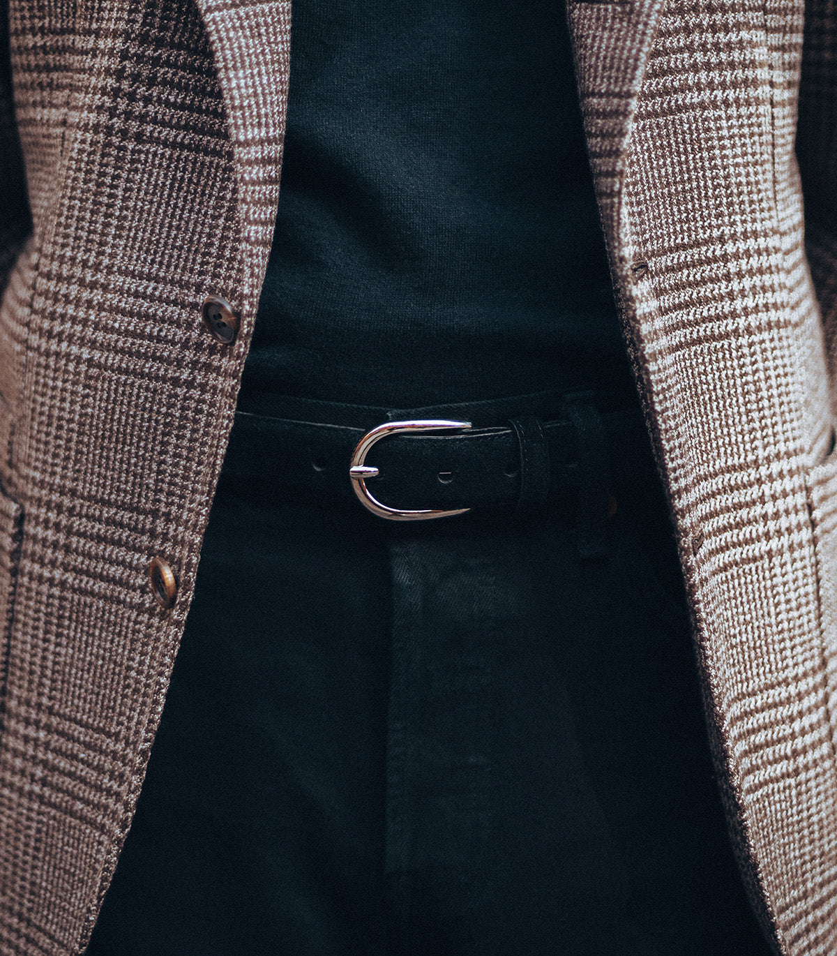 A sophisticated blend of elegance and timeless design. Crafted from premium black suede. Its sleek 2.8 cm width and round buckle create a refined, understated look, making it the perfect accessory for both formal and casual outfits. A true wardrobe staple available in four options of leather.