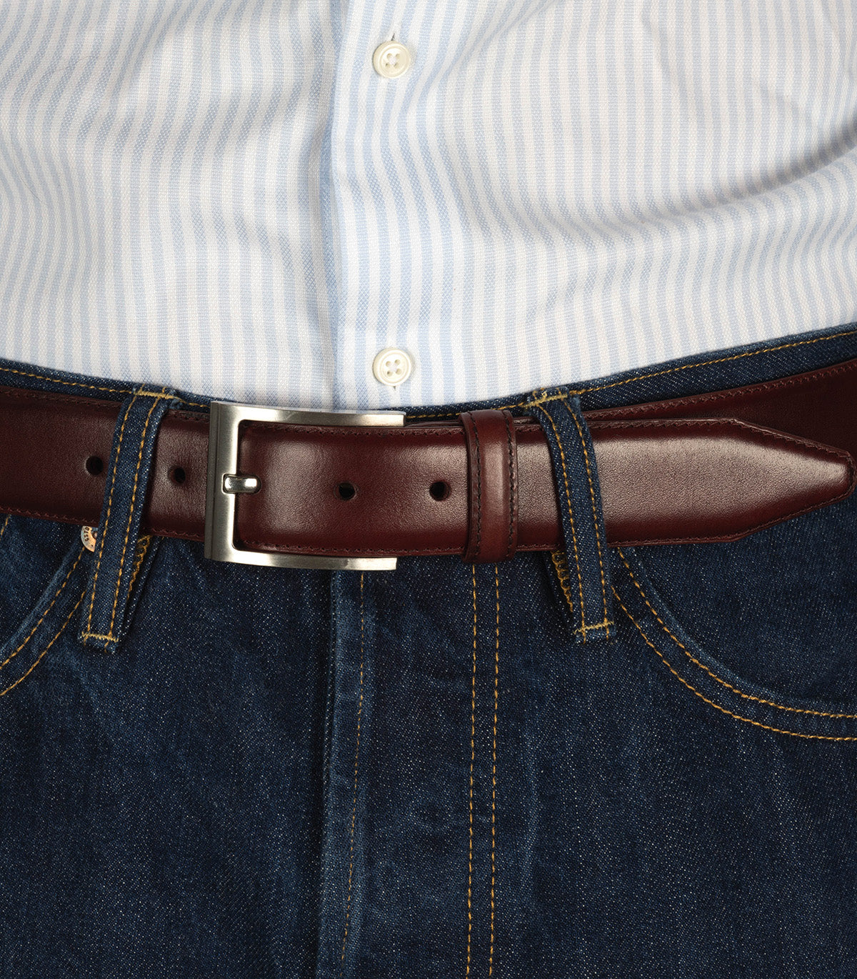 Please note you will need to add two inches to your trouser waist size when selecting your belt. Size measurement is shown measured to the center hole of the belt (third hole of five).
