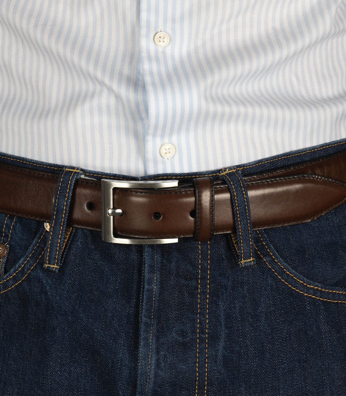 Made from premium calf leather, this belt combines timeless craftsmanship with everyday versatility. With a traditional square buckle and its 3.5 cm width the Philip belt offers a polished, refined look that complements both casual and formal attire. Available in six options of leather.