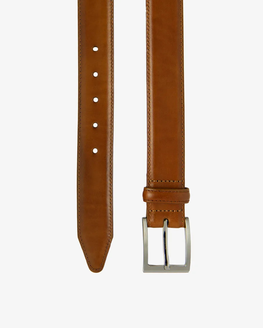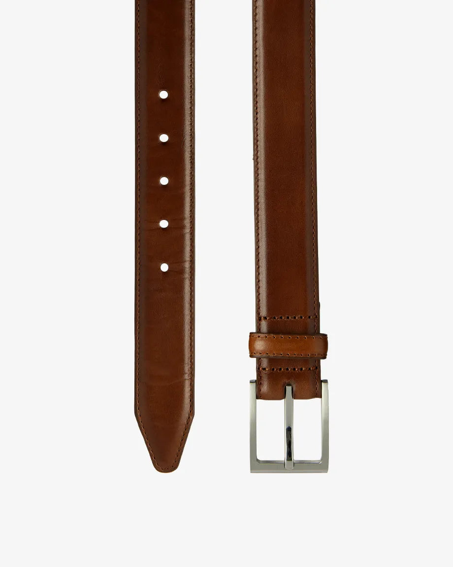 Made from premium calf leather, this belt combines timeless craftsmanship with everyday versatility. With a traditional square buckle and its 3.5 cm width the Philip belt offers a polished, refined look that complements both casual and formal attire. Available in six options of leather.