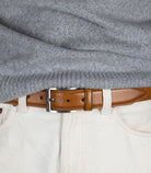 Made from premium calf leather, this belt combines timeless craftsmanship with everyday versatility. With a traditional square buckle and its 3.5 cm width the Philip belt offers a polished, refined look that complements both casual and formal attire. Available in six options of leather.