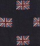 Premium wool socks with a navy background and Union Jack pattern. Made in Britain, from 63% wool and 37% nylon.